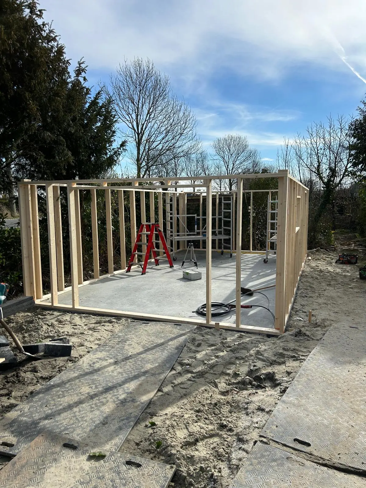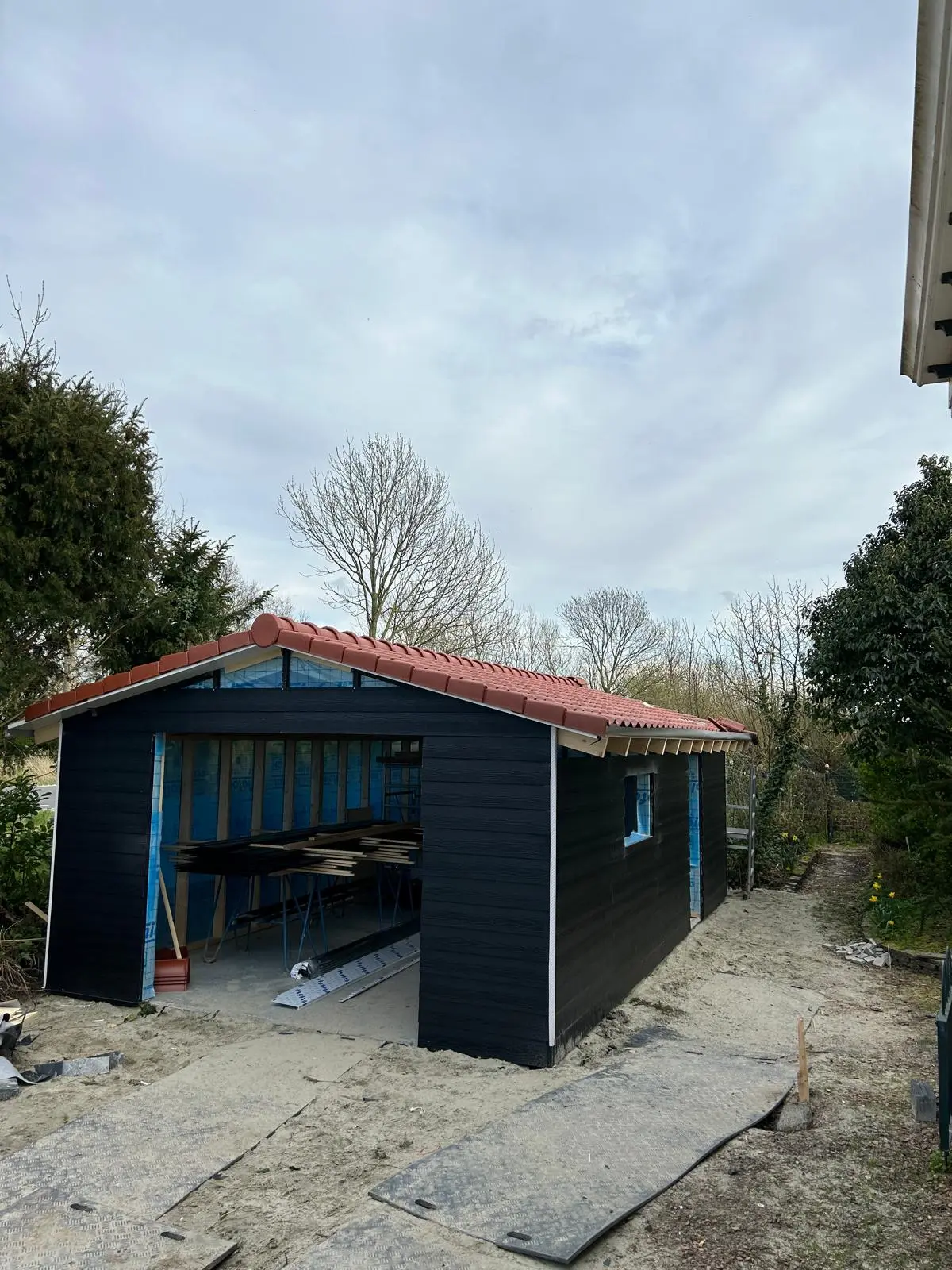 Bij de start van dit project hebben we nauw samengewerkt met de klant om hun wensen in kaart te brengen. Ze wilden dat de schuur in dezelfde stijl zou passen als het huis, met bijpassende dakpannen en kozijnen in dezelfde kleur en vorm. Voor een landelijke, onderhoudsvrije uitstraling hebben we gekozen voor kunststof kozijnen, boeidelen en duurzame Eternit gevelbekleding. Na een gedetailleerde tekening en een gezamenlijke goedkeuring gingen we vol enthousiasme aan de slag!